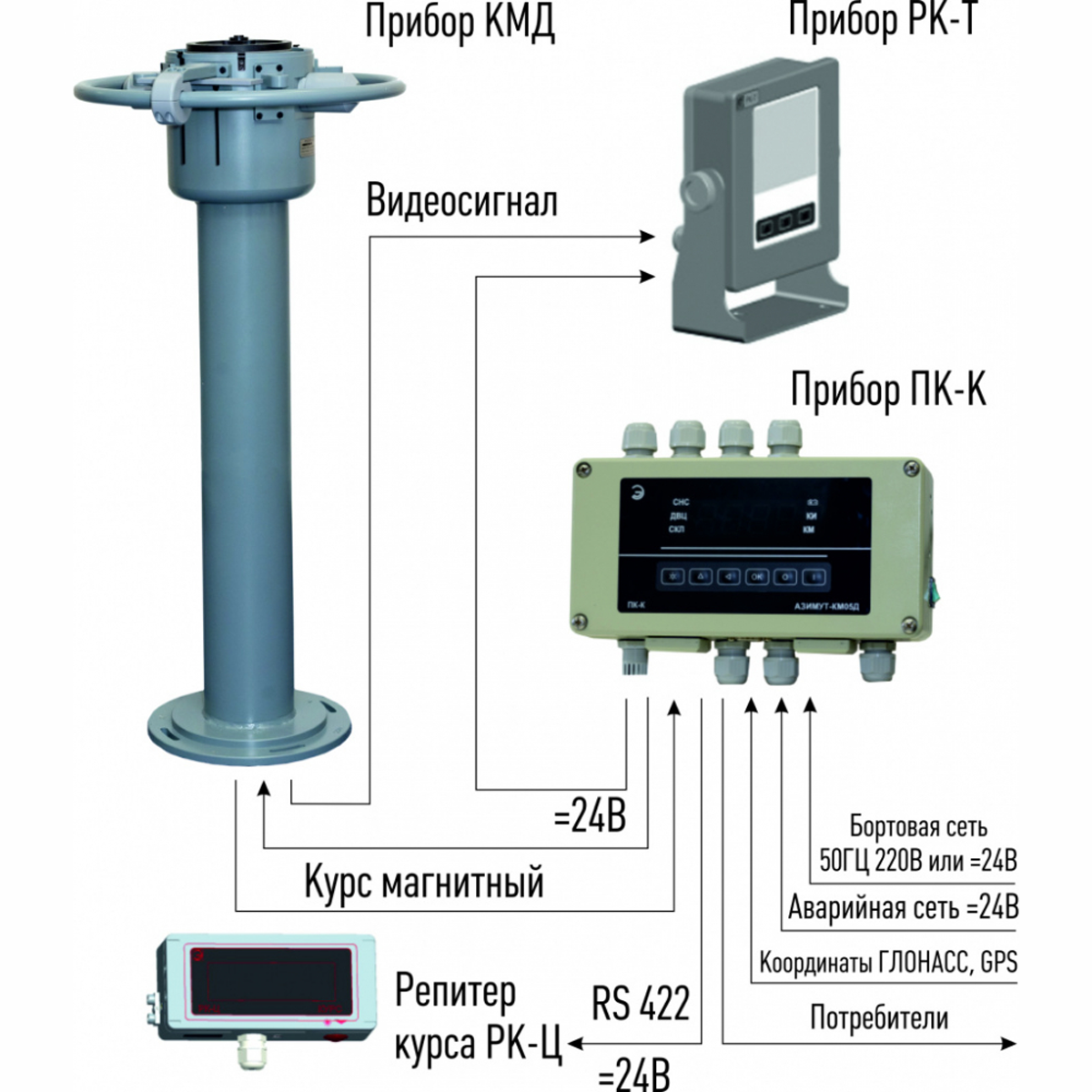 Компас работает от бортовой сети ~220 В 50 Гц, потребляя не более 50 Вт, и быстро входит в рабочий режим — не более чем за одну минуту. Точность его работы высока: погрешность пеленга составляет не более полуградуса, а погрешность электропередачи — не более полутора градусов. Для интеграции в современные системы навигации компас использует интерфейсы RS-422 и IEC61162-1 (NMEA0183 v.2.2). Отечественное производство гарантирует простоту монтажа, наладки и последующего технического обслуживания.