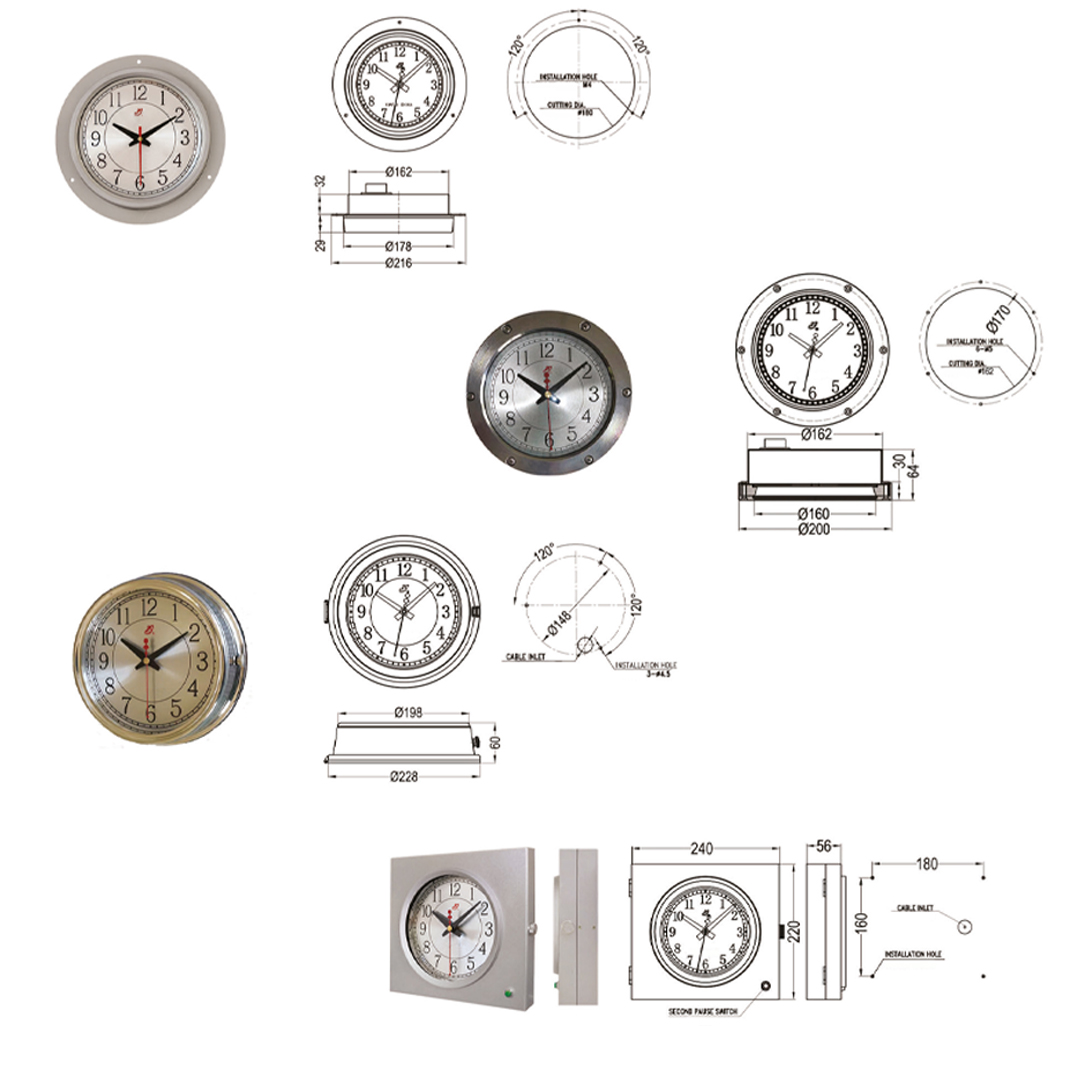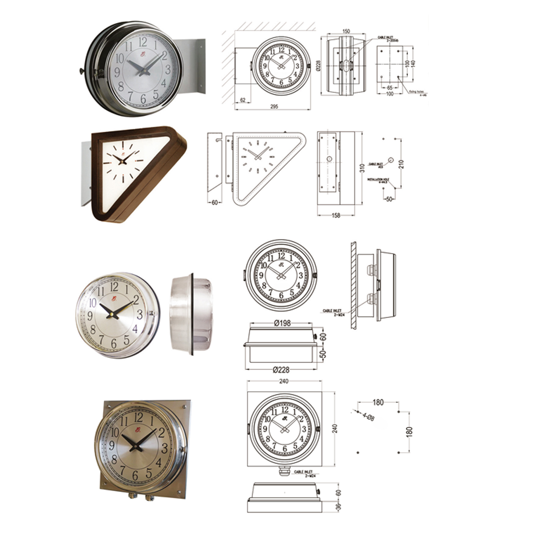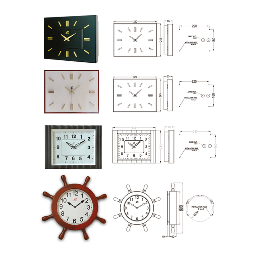 Часы могут быть оснащены светодиодной подсветкой. Масса таких ведомых часов варьируется от 1,15 кг до 4 кг (зависит от модели). Класс защиты соответствует стандарту IP22. Вторичные часы могут быть: деревянными, стальными, медными. Система единого времени позволяет установить идентичное и точное время во всех помещениях объекта.