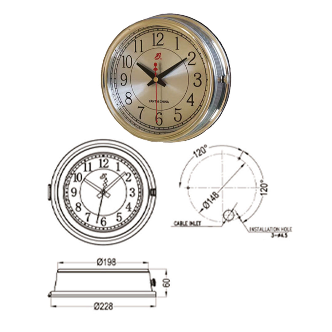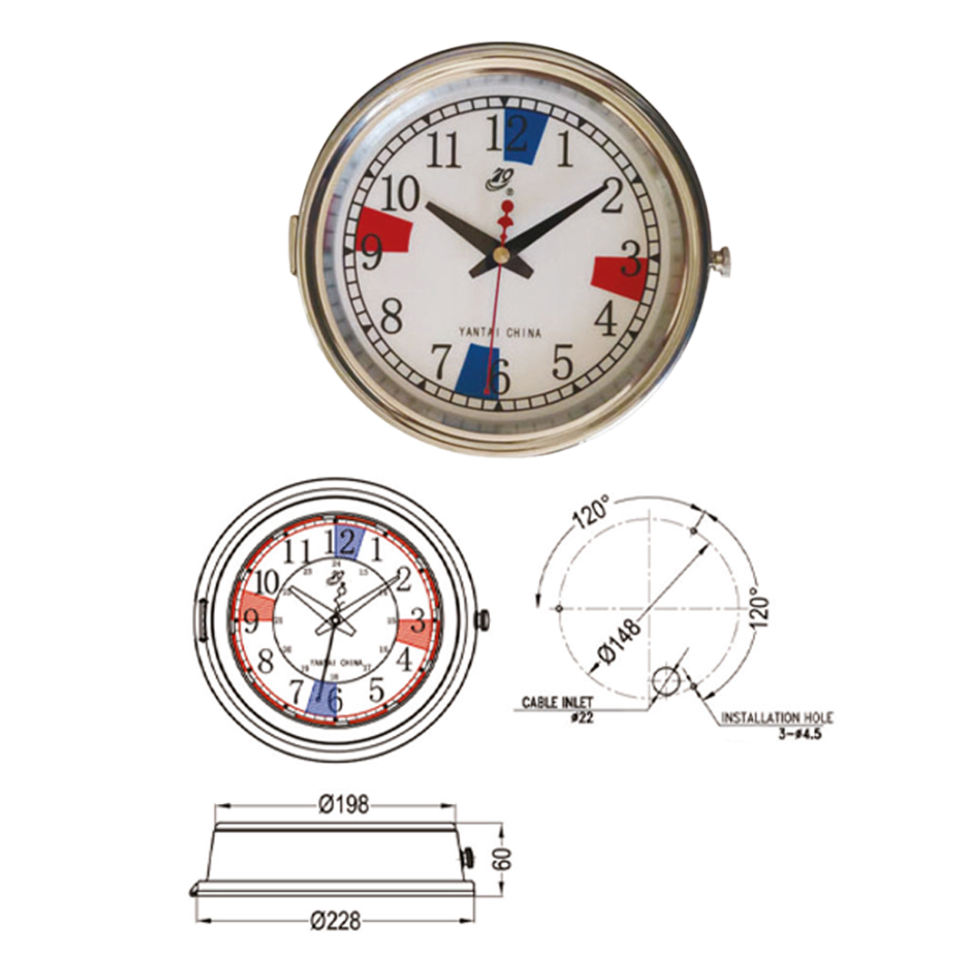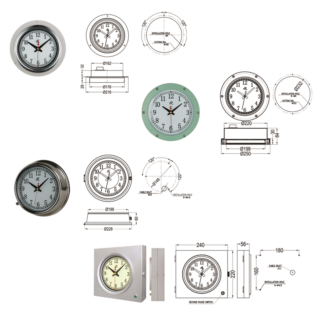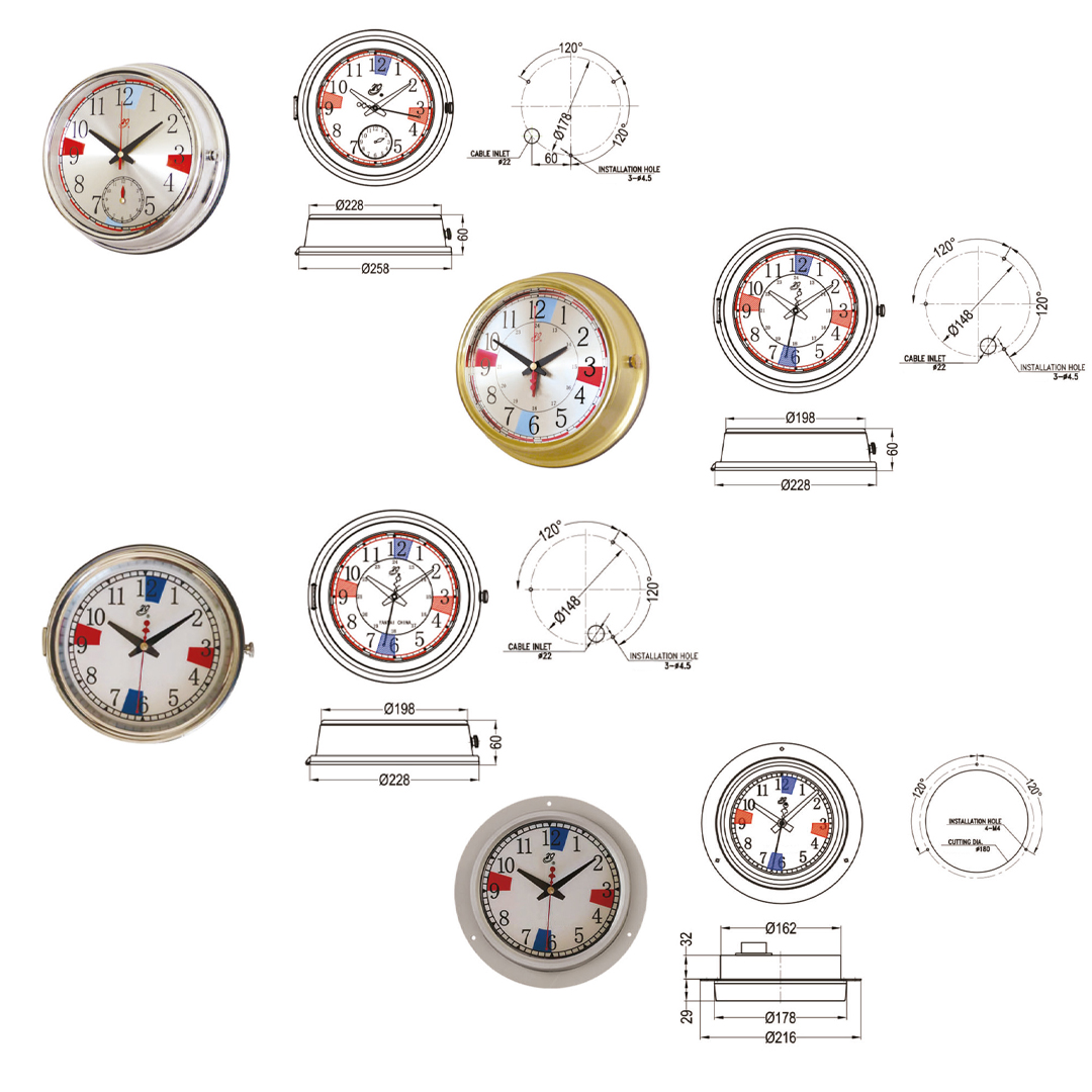 Часы могут быть оснащены светодиодной подсветкой. Масса таких ведомых часов варьируется от 1,15 кг до 4 кг (зависит от модели). Класс защиты соответствует стандарту IP22. Вторичные часы могут быть: деревянными, стальными, медными. Система единого времени позволяет установить идентичное и точное время во всех помещениях объекта.