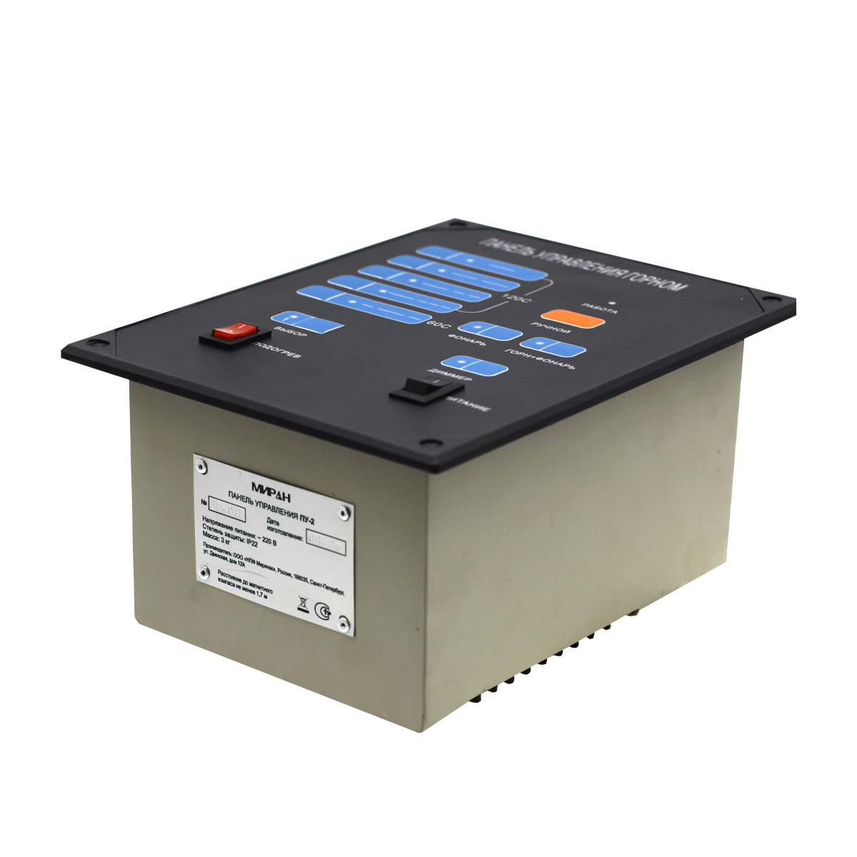 МИРАН ТЭ200 - мощное и надежное решение, разработанное группой компаний «Маринэк» для обеспечения аварийной и навигационной сигнализации на крупных судах. Этот тифон предназначен для судов длиной более 200 метров, оперирующих на внутренних водных путях (ВВП) России и в условиях смешанного плавания «река-море».