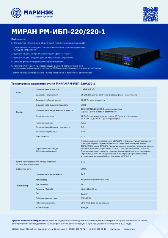 Брошюра источник бесперебойного питания МИРАН РМ-ИБП-220220-1