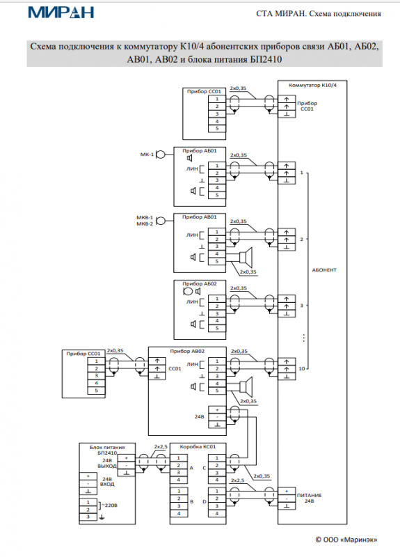Схема подключения к коммутатору К104 приборов АБ01, АБ02,