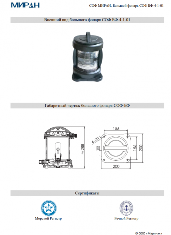 СОФ МИРАН большой фонарь БФ-4-1-01.