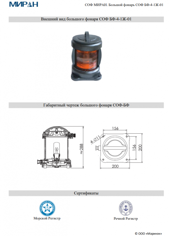 СОФ МИРАН большой фонарь БФ-4-1Ж-01.