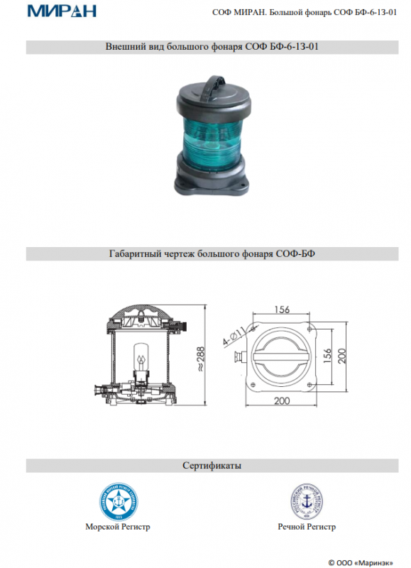 СОФ МИРАН большой фонарь БФ-6-1З-01.