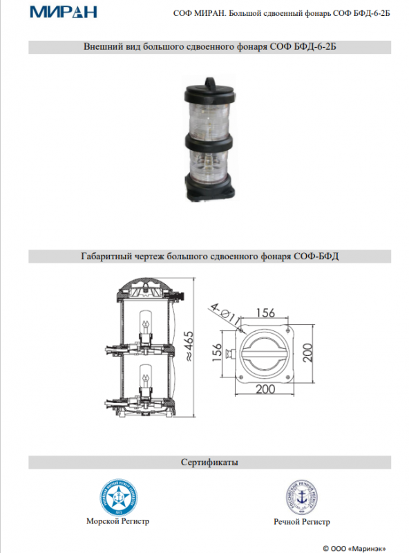 СОФ МИРАН большой сдвоенный фонарь БФД-6-2Б.