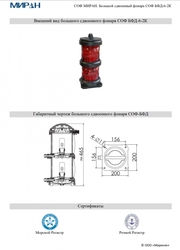 СОФ МИРАН большой сдвоенный фонарь БФД-6-2К.
