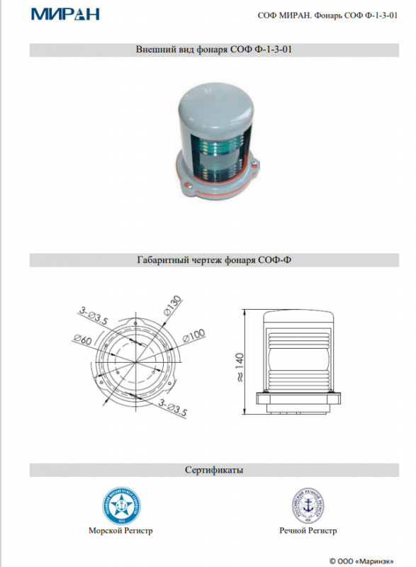 Брошюра сигнально-отличительный фонарь МИРАН СОФ Ф-1-3-01