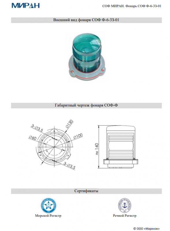 Габаритная схема МИРАН СОФ Ф-6-3З-01