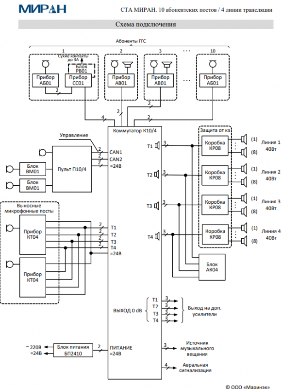 СТА МИРАН. 10 абонентский пост 4 линии трансляции