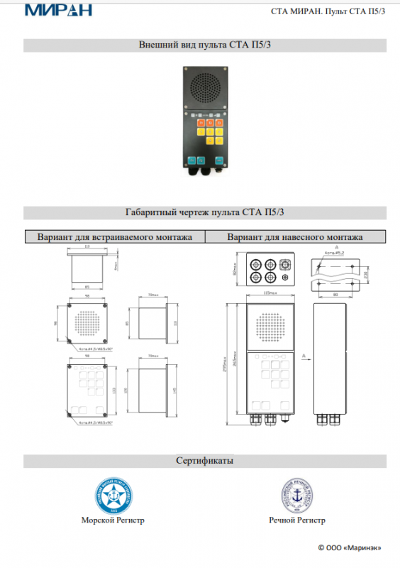 Пульт СТА МИРАН П5/3