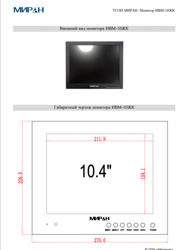 Габаритные размеры МИРАН ТСОН ИВМ-10ЖК