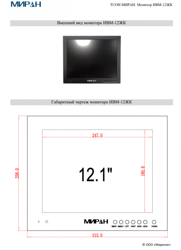 Габарттные размеры МИРАН ИВМ-12ЖК