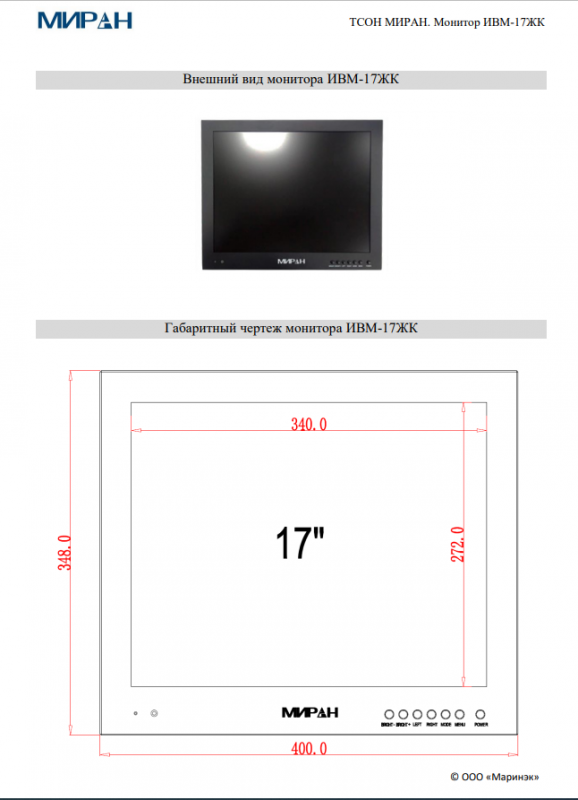 Габаритные размеры МИРАН ТСОН ИВМ-17ЖК