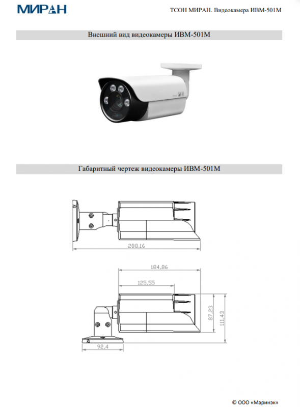 Судовое видеонаблюдение ТСОН МИРАН Видеокамера ИВМ-501М