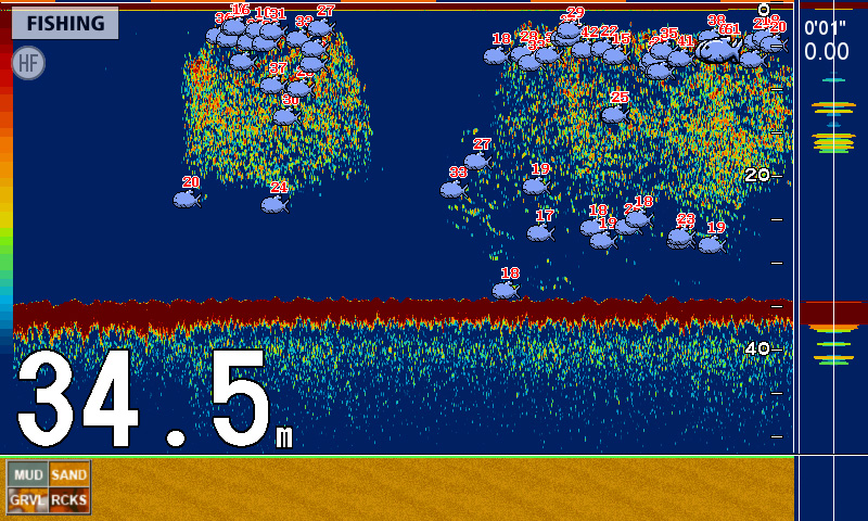 Опубликованный здесь снимок был сделан у берегов Японии на глубине 34.5 метров на эхолот Furuno. Устройство отправляет звуковой импульс от трансдьюсера (специального датчика), располагаемого на днище судна. Импульс, отражаясь от морского дна, возвращается обратно и выводится на экран в виде цветной картинки. По этой иллюстрации можно установить характер, или структуру дна, и его рельеф – в данном случае плоский и песчаный. Опытного рыболова отличает умение установить местонахождение рыбы по косвенным признакам: глубина, прибрежная растительность и характер берега. Понимание и оперирование информацией, отображаемой на технических устройствах, ещё больше способствует повышению эффективности рыбной ловли. Как следствие, от правильного выбора технических средств – а в данном примере это эхолот Furuno – будет зависеть успех всего рыболовного предприятия.