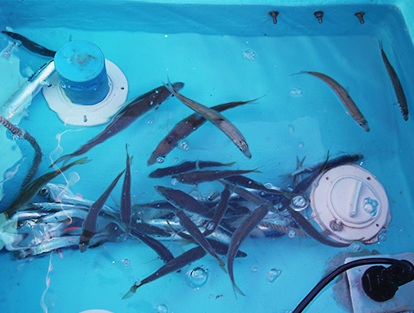Этот прибор Furuno среднечастотный: он работает на частоте 200 кГц, которая пригодна как раз для небольших глубин, и предоставляет более качественный результат (небольшая зона распространения луча гарантирует понижение рисков внешних шумов). Само судно в этот момент находилось в дрейфе, движимое со скоростью 0.2 узла. В узкой правой колонке цветными линиями изображается сила эха – эта опция называется A-scope. Она предназначена для отображения актуальной информации об эхе. Японской компании Furuno, специализирующейся на оборудовании для судового оснащения, принадлежит оригинальное изобретение: функция ACCU-FISH позволяет идентифицировать на глубине от 2 до 100 метров количество и размеры (от 10 до 199 см) отдельных рыб, причём нескольких сразу. Под водой возникает эффект: при высокой плотности в косяке рыба кажется чуть больше, чем на самом деле, – о нём не стоит забывать. Благодаря собранным эхолотом Furuno данным рыбалка принесла завидный улов анчоусов.