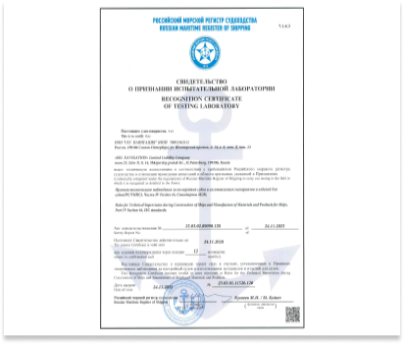 Компания-партнер ГК «Маринэк» «ССГ-Навигация» получила свидетельство о признании испытательной лаборатории соответствующей требованиям РМРС. Сертификат подтверждает техническую компетенцию на проведение испытаний в области признания.