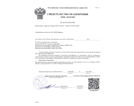 - Одобрение СТ-1, РКО, РМРС, СТиС МВД, RINA;