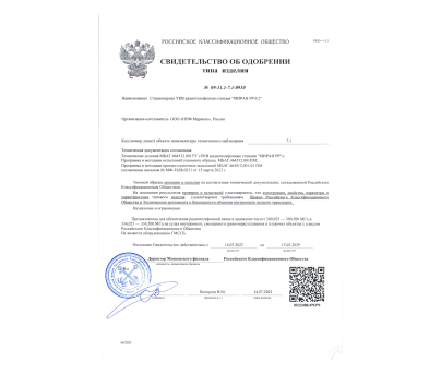 Компания ООО «НПФ Маринэк» получила СВИДЕТЕЛЬСТВО ОБ ОДОБРЕНИИ на Стационарную УКВ радиотелефонную станцию МИРАН РР-С2.