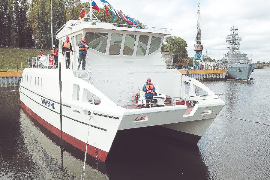 В России появилось первое судно такого типа — «Пионер-М». Это маломерное научно-исследовательское судно катамаранного типа. Для него «Маринэк» по запросу АО «ОСК-Технологии» поставило радио и навигационное оборудование: