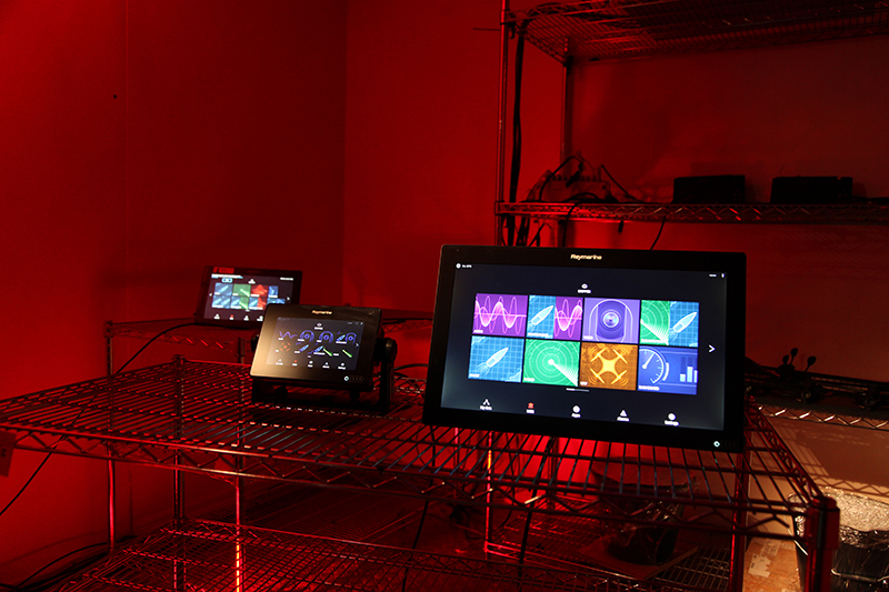 Наблюдать за тем, как проводятся подобные тесты, просто поразительно. Экскурсия по испытательному центру Raymarine начинается с термических камер, где оборудование многократно тестируется холодом и влагой в течение ночи, чтобы понять, как оно запускается, перезапускается и функционирует в широком диапазоне температур от -25 до 55 °C, а также выдерживает хранение вне рабочего режима в диапазоне от -30 до -70 °C.