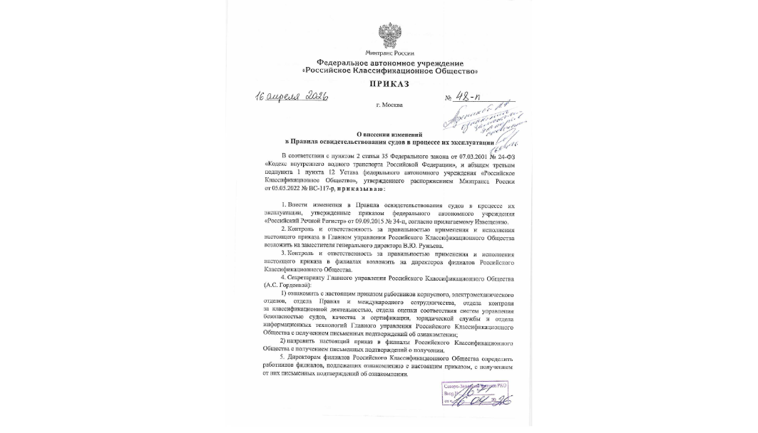 Российское Классификационное Общество утвердило изменения в Правила освидетельствования судов
