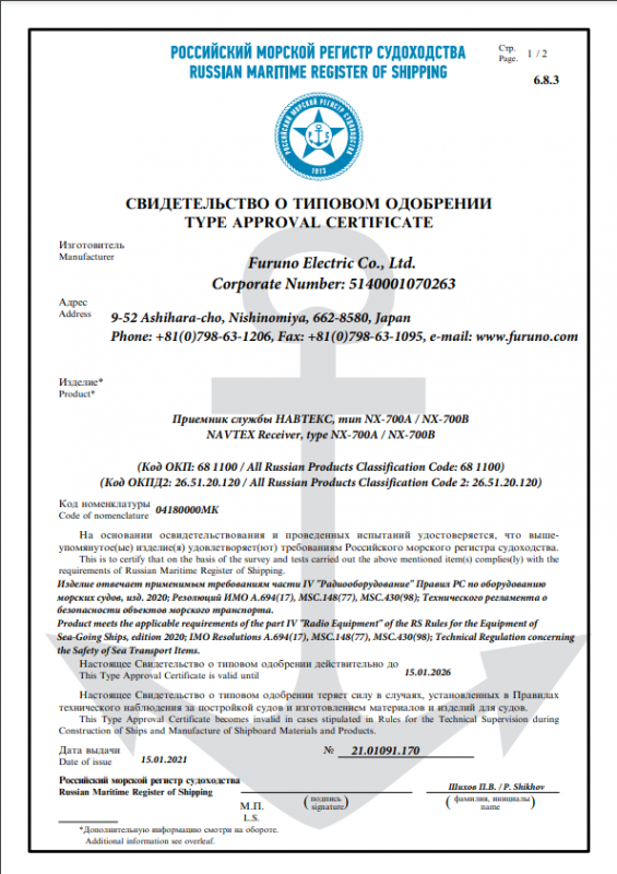 РМРС Furuno NX-700A/B