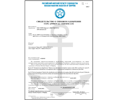 Свидетельство о типовом одобрении РМРС МИРАН БПз1215