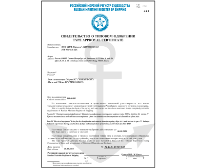 Свидетельство о типовом одобрении РМРС МИРАН БС05