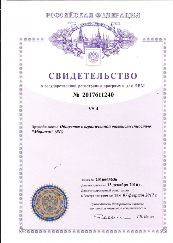 Роспатент Свидетельство о госрегистрации ПО VS-4