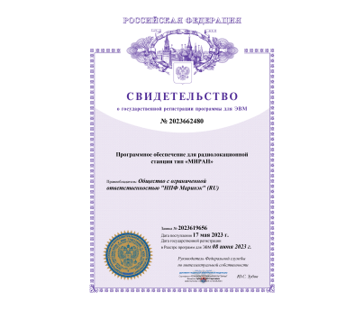 Свидетельство о регистрации программы для ЭВМ РЛС МИРАН