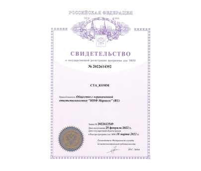 Свидетельство о регистрации программы для ЭВМ СТА_КОММ