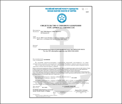 Свидетельство о типовом одобрении РМРС МИРАН МР-ГМССБ