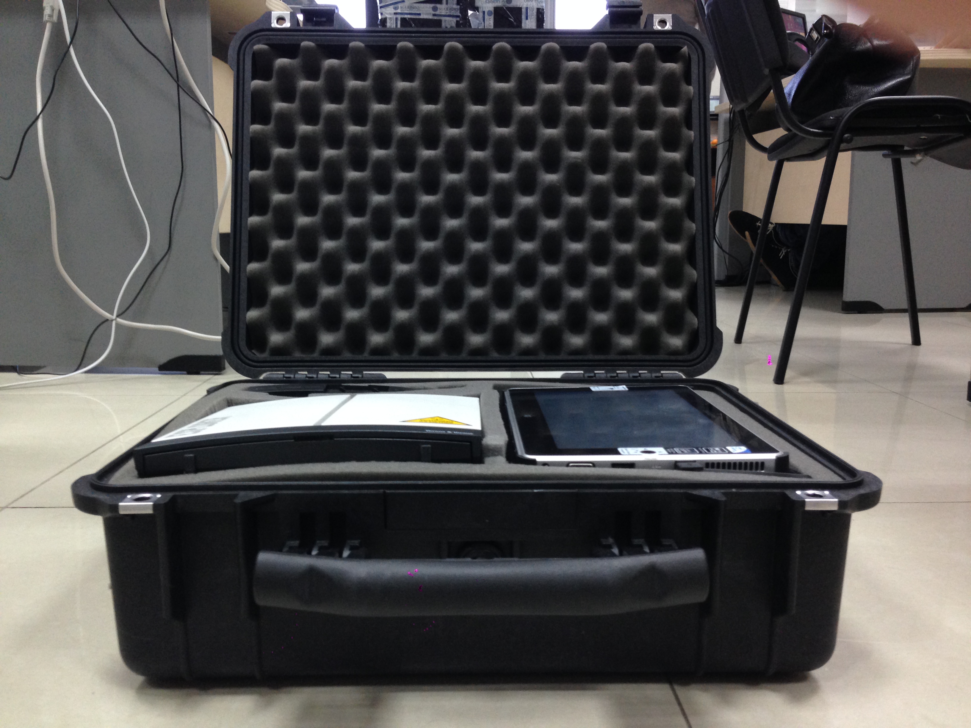Все оборудование было упаковано в защитный кейс PELI iM2300, который отлично зарекомендовал себя в сохранении оборудования от ударов, вибрации и низких температур. PELI iM2300 имеет регулируемый клапан воздушного давления, что позволило регулировать его при изменении высоты и температуры окружающей среды. Внутренность кейса заполнена насеченным поропластом, который вырезали лазером под габариты укладываемого внутрь оборудования.