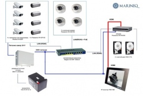 Типовая схема установки системы видеонаблюдения на судне будет иметь следующий вид: